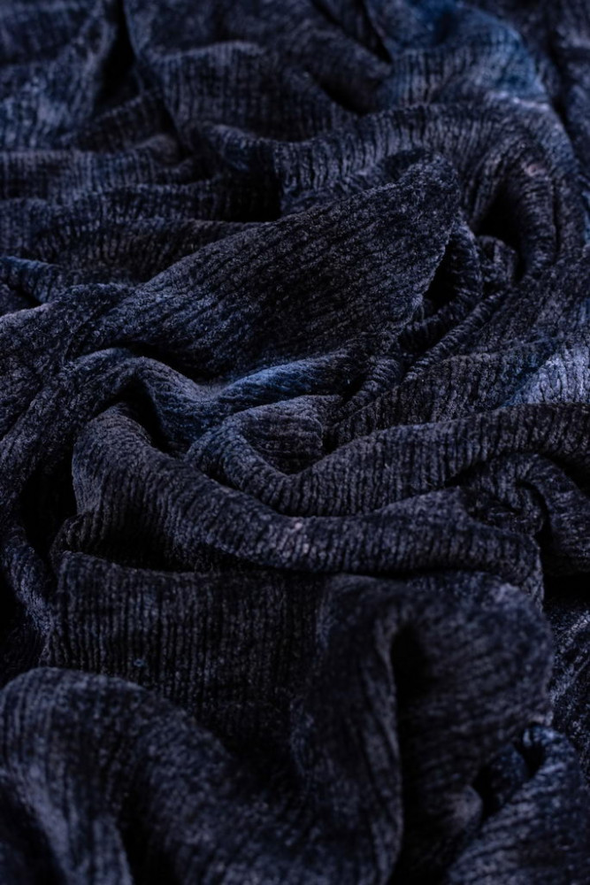 Kiváló minőségű, vastag, zsenilia kötöttáru. Anyaga rendkívül puha és kellemes tapintású. A zsenília egyfajta bolyhos fonal, ami jelen esetben műszálból van. Ez a fonal a szövet teltségét növeli, a felületet plasztikussá teszi. Felületének színezete batikolt hatású.