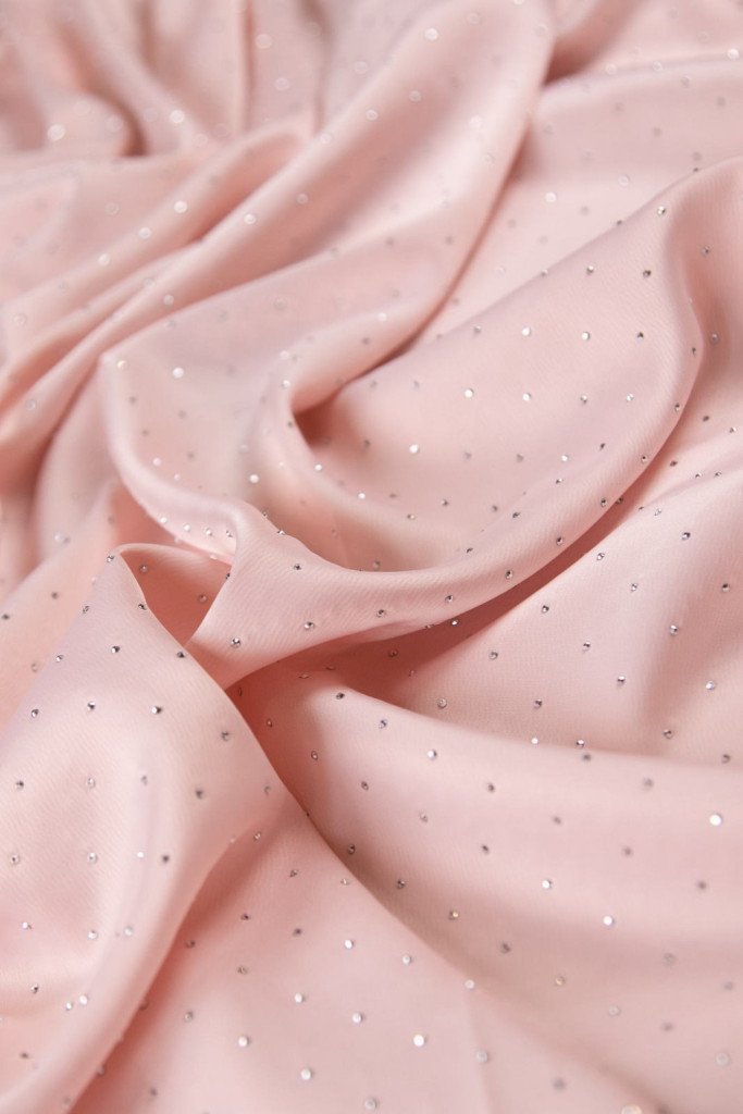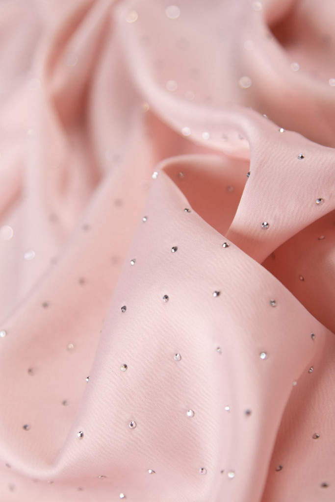 Kristállyal díszített polyester selyem, szaténos felülettel. Tökéletes választás, ha valamilyen elegáns ruhadarabot szeretnénk. Ettől a selymesen csillogó, puha és kellemes tapintású szövettől mindent megkapunk, ami ehhez az érzéshez és megjelenéshez kell. Az apró kristályok teszik igazán tündöklővé.