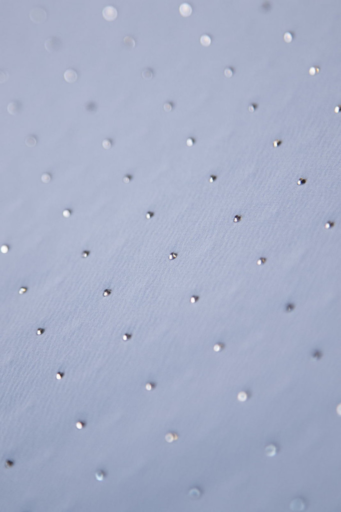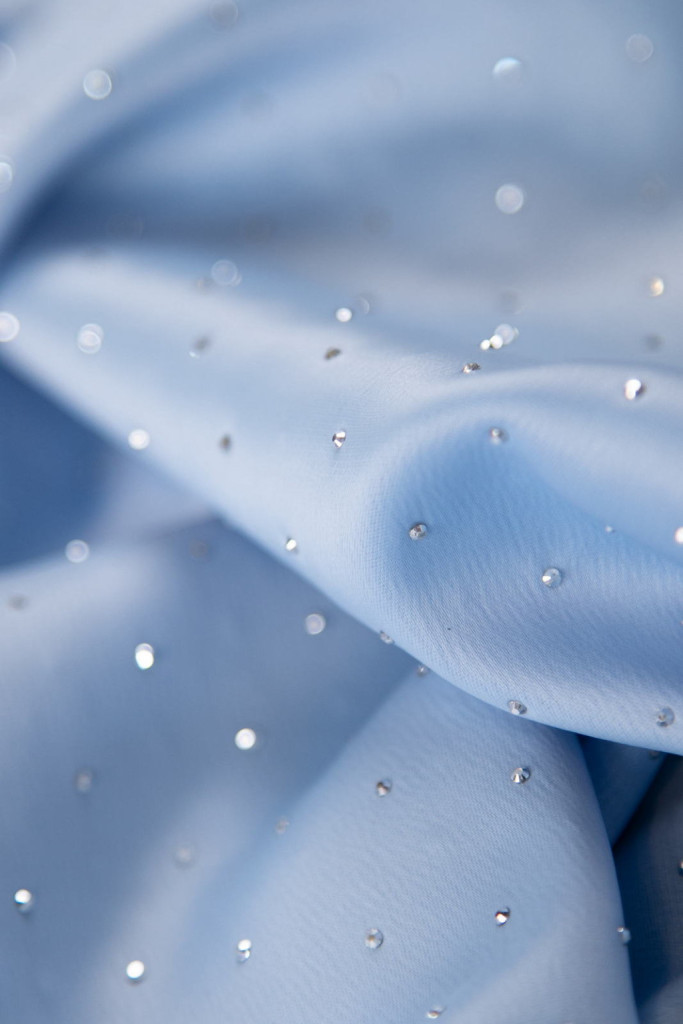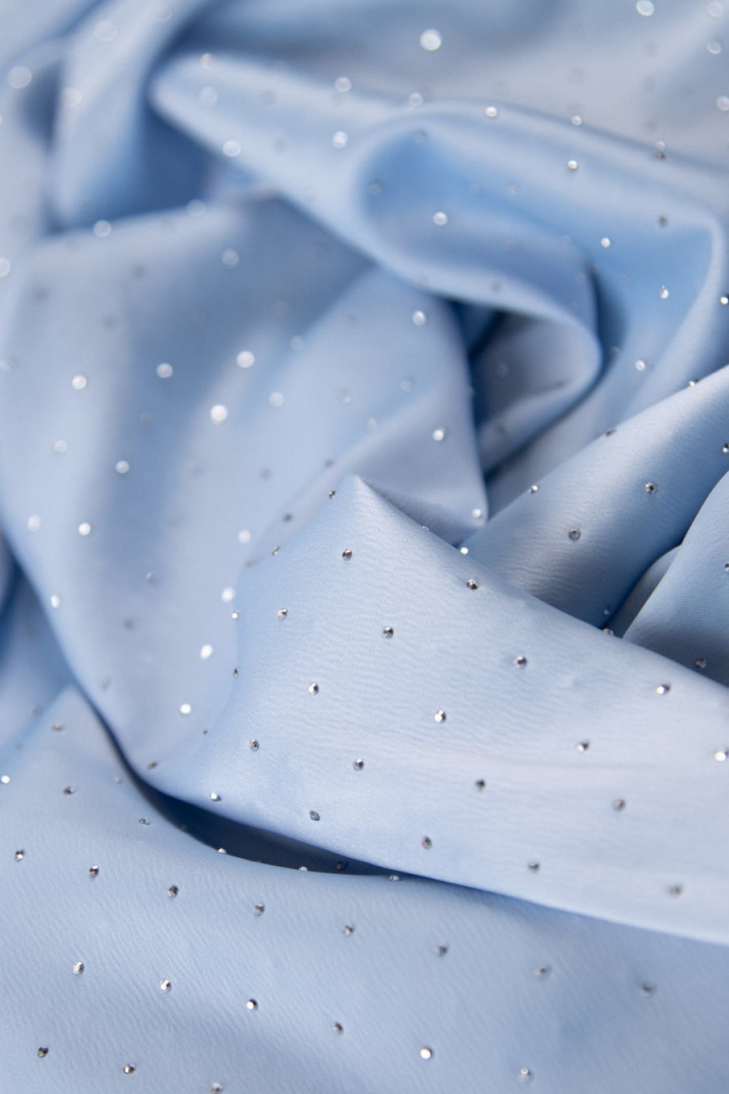 Kristállyal díszített polyester selyem, szaténos felülettel. Tökéletes választás, ha valamilyen elegáns ruhadarabot szeretnénk. Ettől a selymesen csillogó, puha és kellemes tapintású szövettől mindent megkapunk, ami ehhez az érzéshez és megjelenéshez kell. Az apró kristályok teszik igazán tündöklővé.