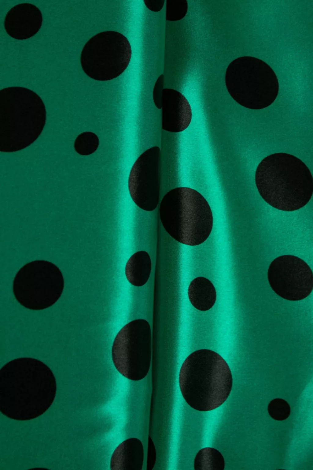 Textil alapszíne: Zöld-fekete. A pöttyok mérete:1-2-4cm