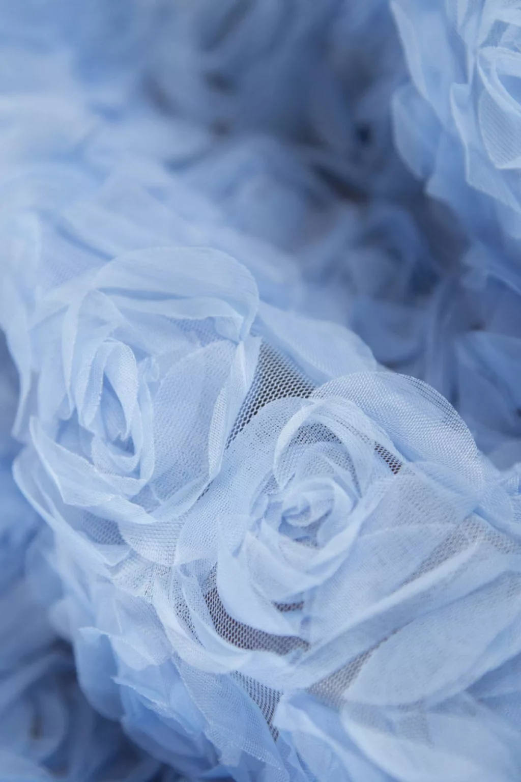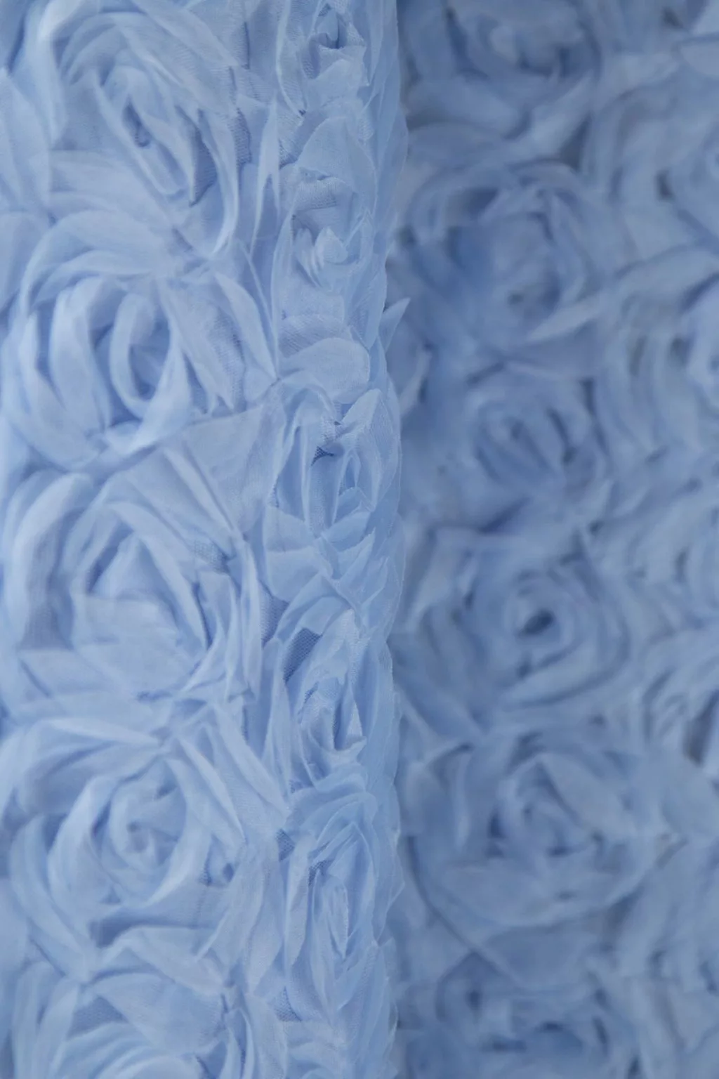 Puha, lágy esésű tüll anyag, amin 3D rózsák vannak az anyag teljes szélességében.A rózsák átmérője kb.:4,5 cm.