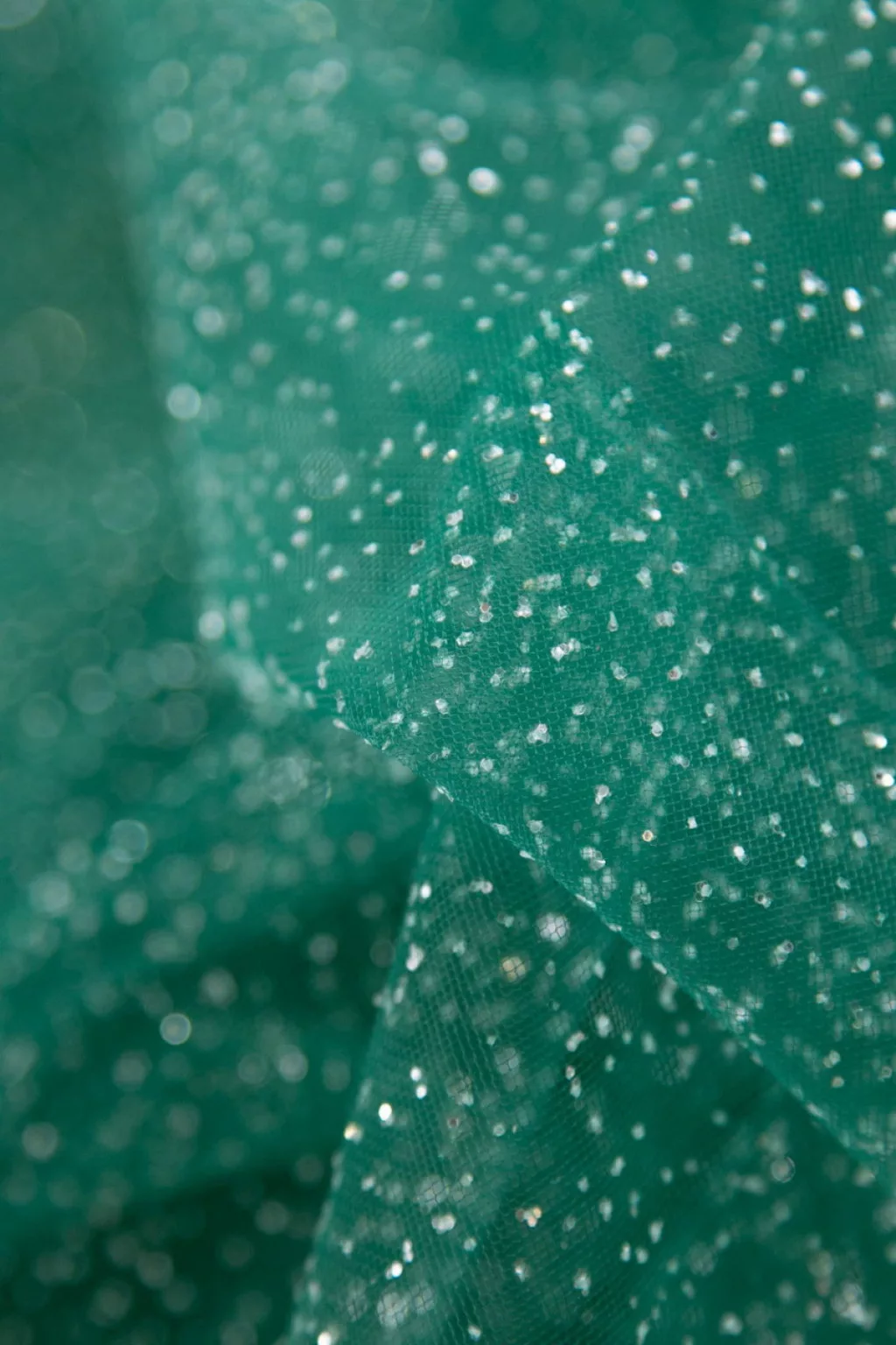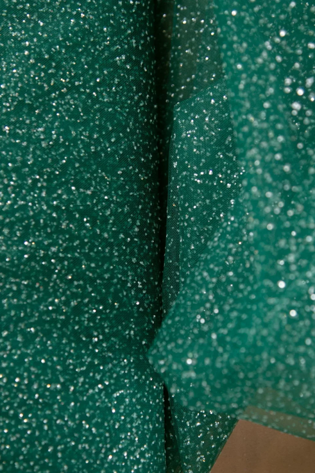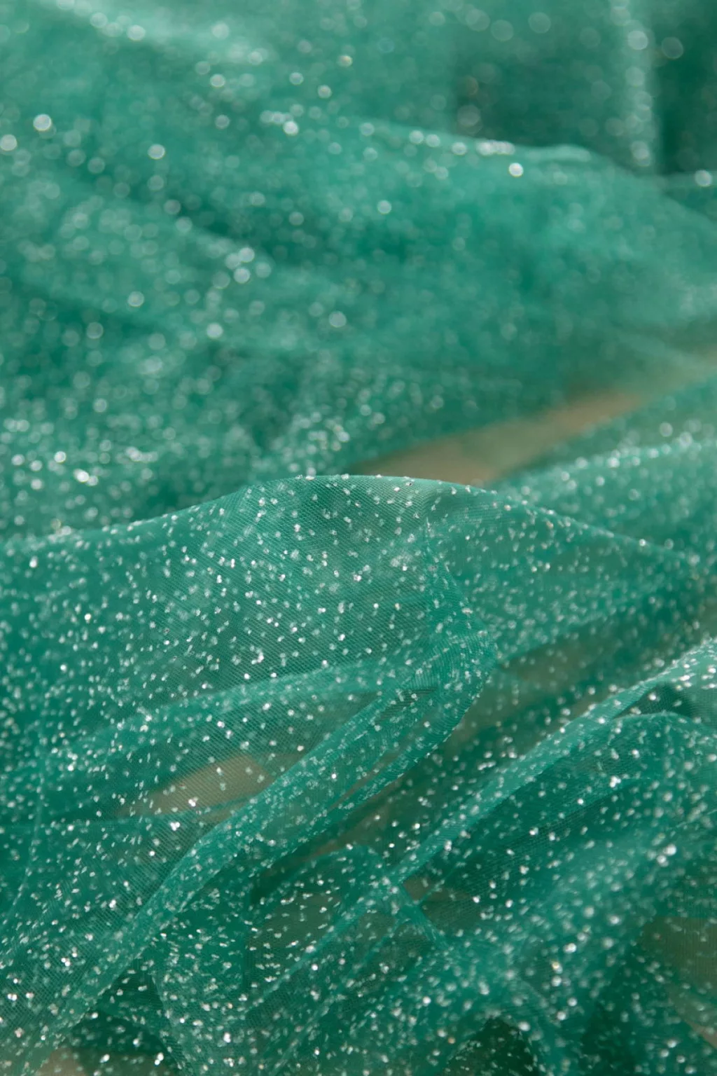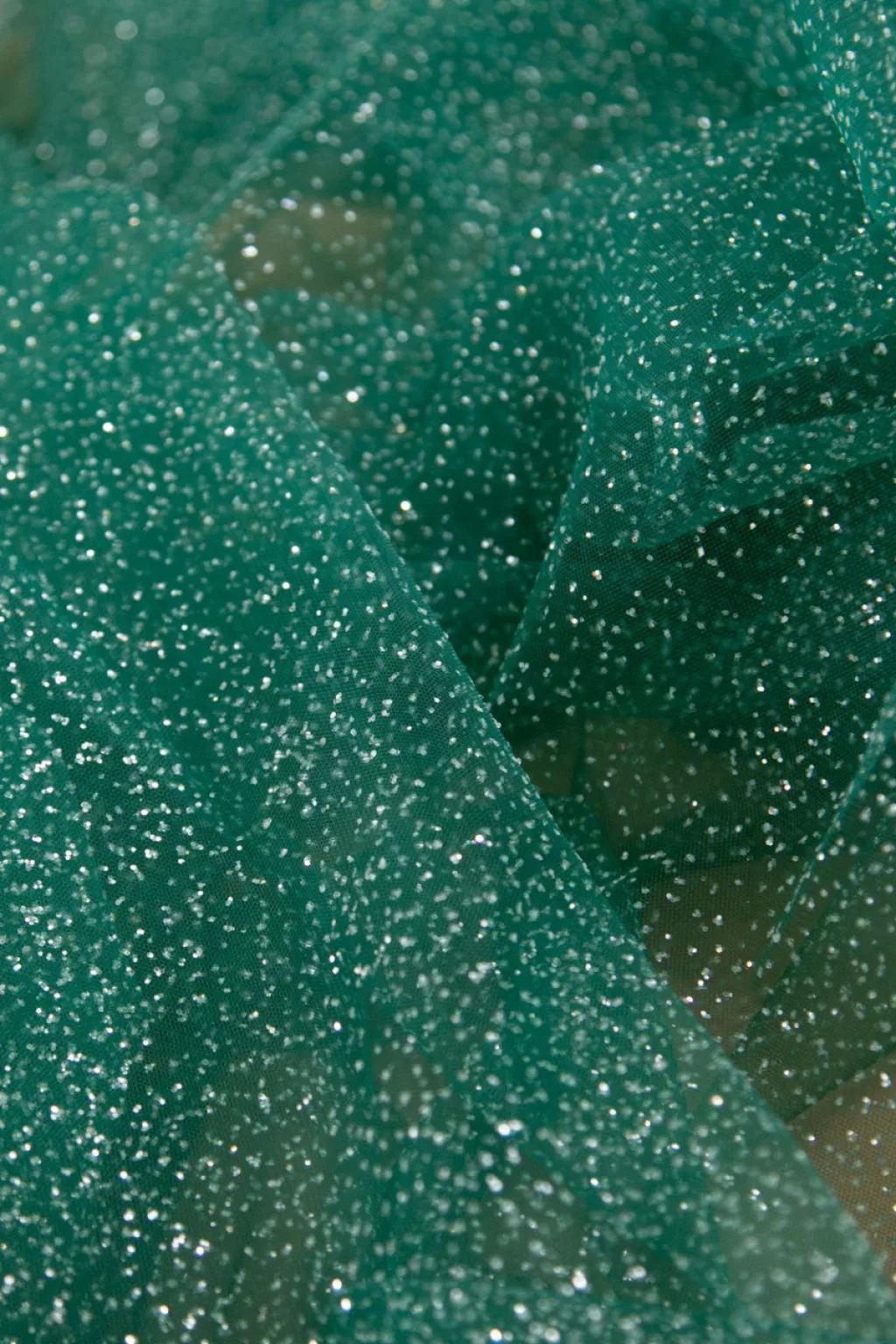 Puha, lágy esésű, csillámos felületű tüll anyag.