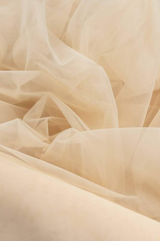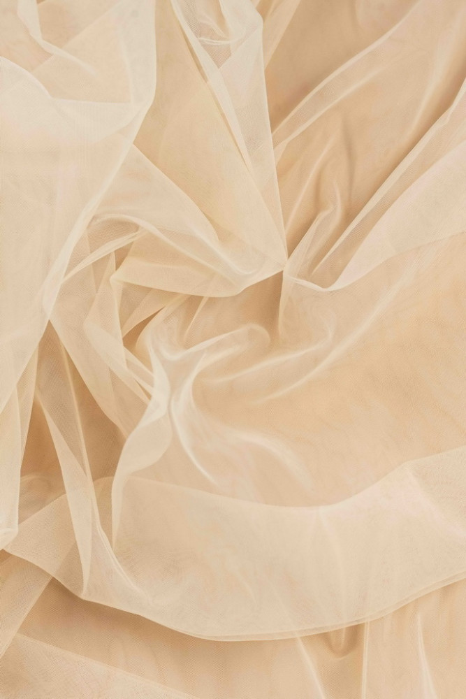 300cm széles rugalmas tüll anyag. Az illúzió tüll különleges alkalmakra szánt elegáns megjelenésű csipke applikációk ruhaalapjaként szolgál.