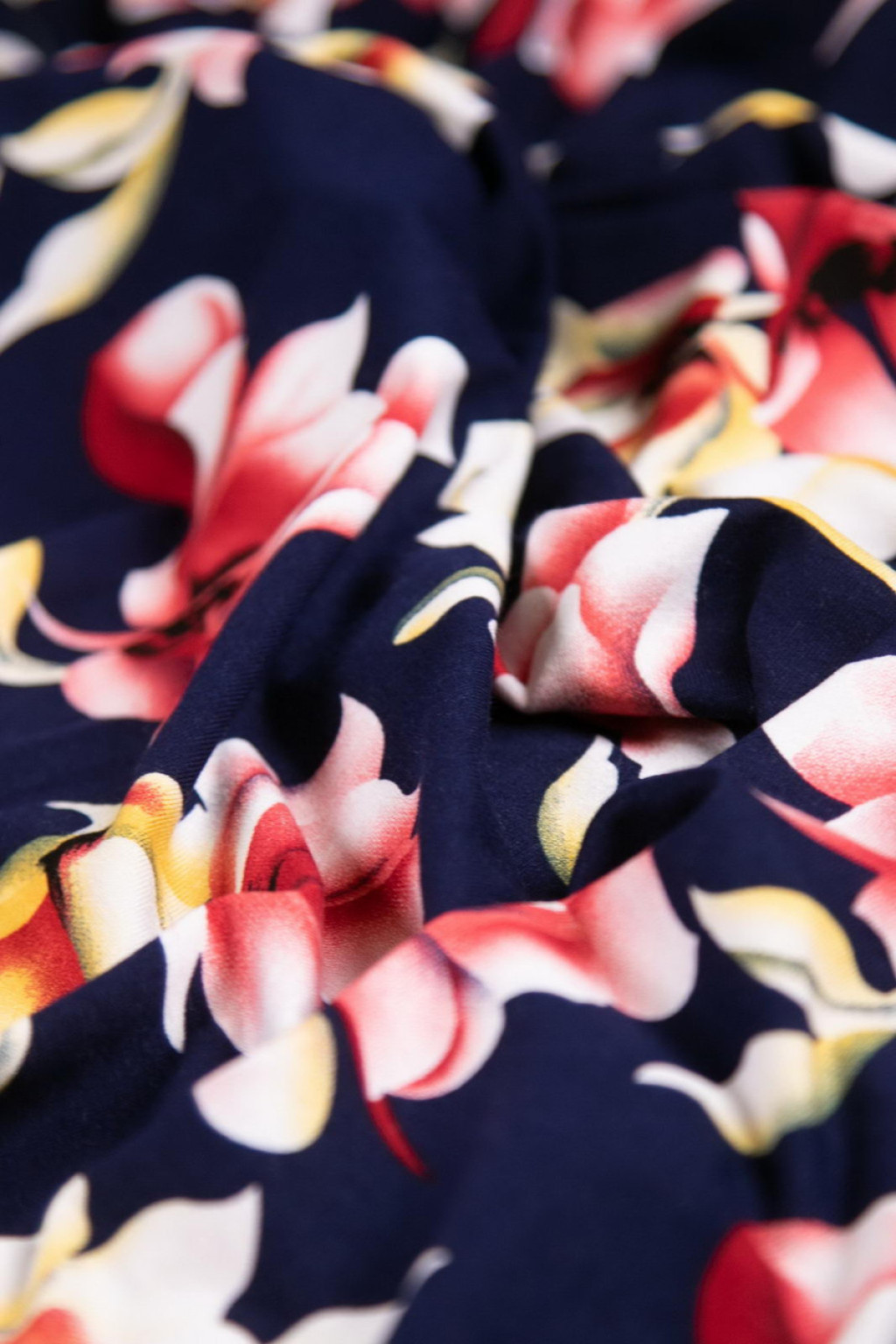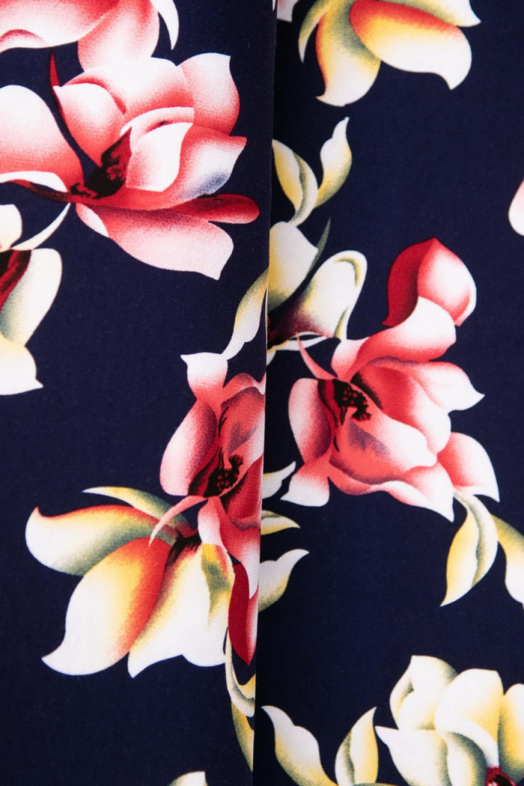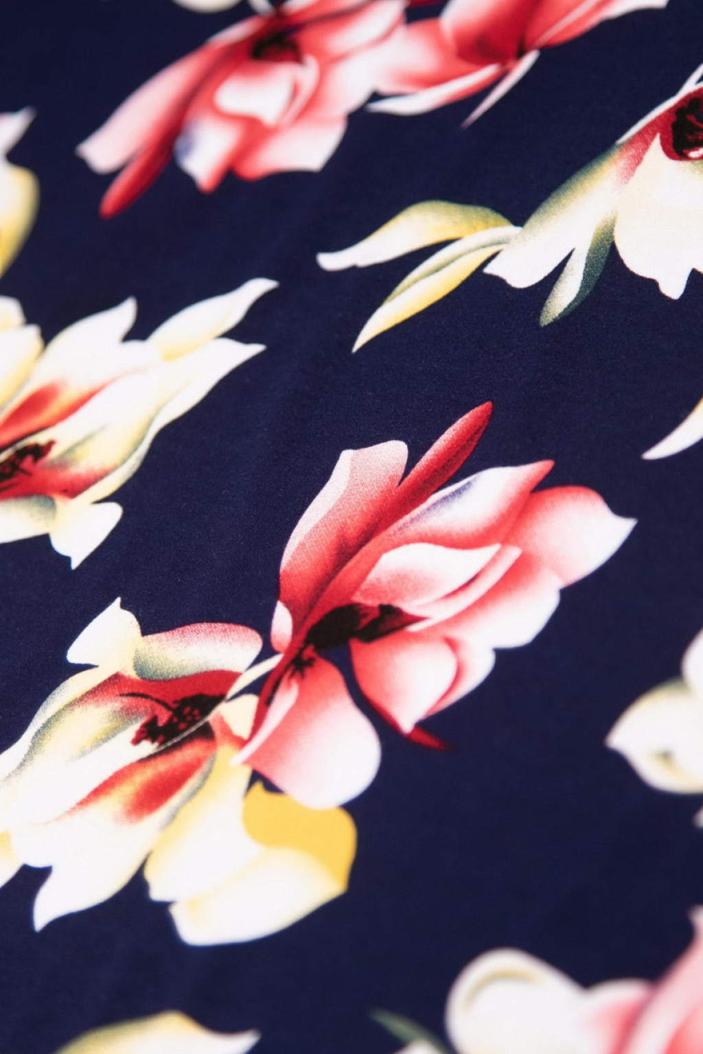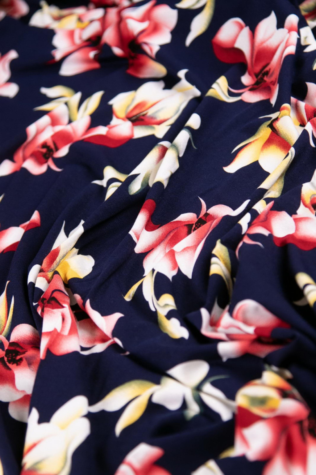 Textil alapszíne: sötétkék alapon színes virágok
