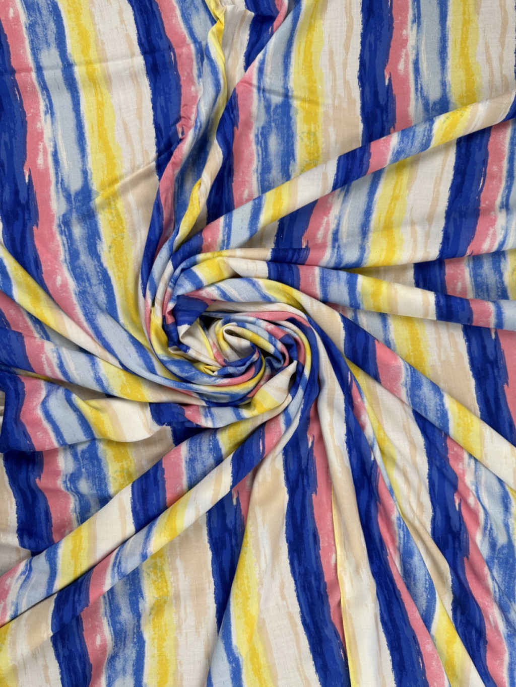 Textil alapszíne: kék-sárga-rózsaszín-fehér csíkos